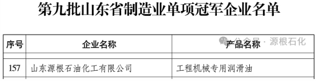 【会员动态】我会理事单位源根石化斩获山东省制造业单项冠军!工程机械专用润滑油领域再立标杆