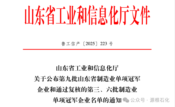 近日,山东省工业和信息化厅发布《关于公布第九批山东省制造业单项冠军企业和通过复核的第三、六批制造业单项冠军企业名单的通知》,我会理事单位、山东源根石油化工有限公司凭借工程机械专用润滑油领域的突出优势,成功入选第九批山东省制造业单项冠军企业,彰显了企业在细分领域的硬核实力与行业引领地位。