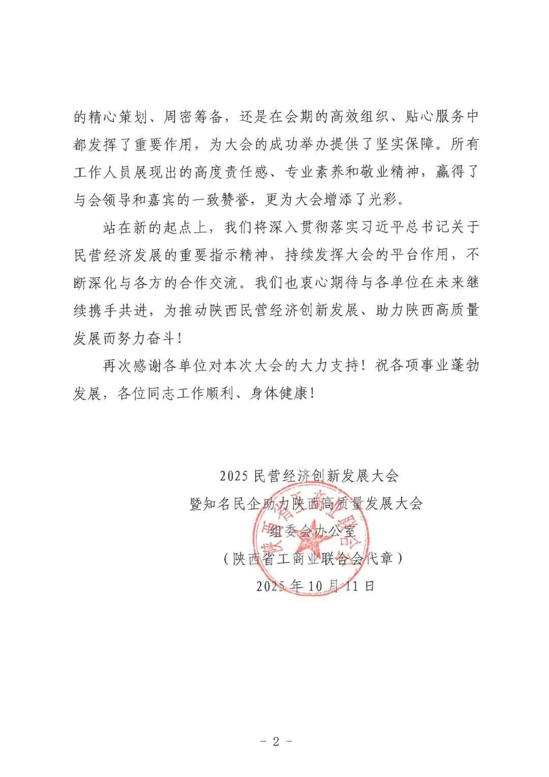 全国工商联、陕西省人民政府举办2025民营经济创新发展大会圆满成功。本次平行会议创新组织方式,精准聚焦产业链协同,尤其强化了企业主体地位,充分尊重市场规律,为企业间寻找合作伙伴、开展技术协同、探讨投资机遇创造高效便捷渠道,激发了经营主体的内在活力。
