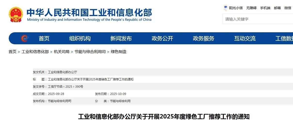 各省、自治区、直辖市及计划单列市、新疆生产建设兵团工业和信息化主管部门: 为贯彻落实《制造业绿色低碳发展行动方案(2025—2027年)》,实施绿色制造标杆升级行动,根据《绿色工厂梯度培育及管理暂行办法》(以下简称《办法》),现组织开展2025年度绿色工厂推荐工作。有关事项通知如下: 一、总体要求 本年度推荐工作包括绿色工厂、绿色工业园区,满足《办法》有关要求的企业或园区按照自愿的原则,对照新的评